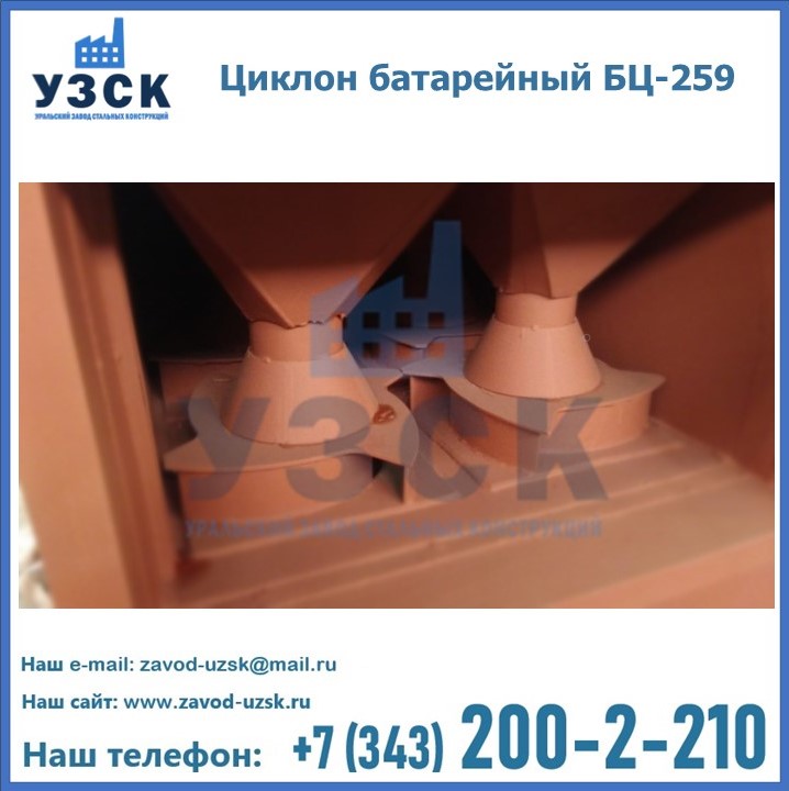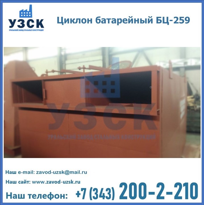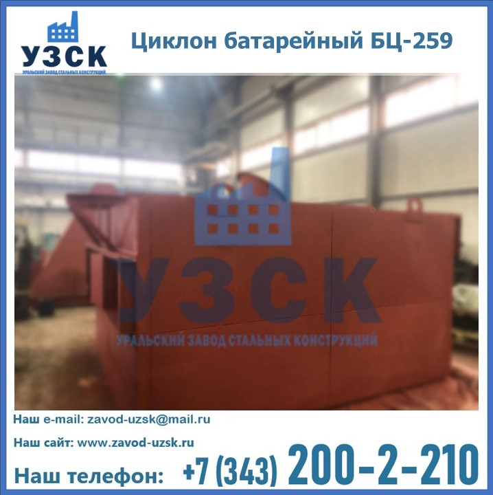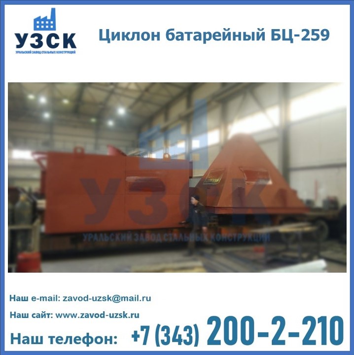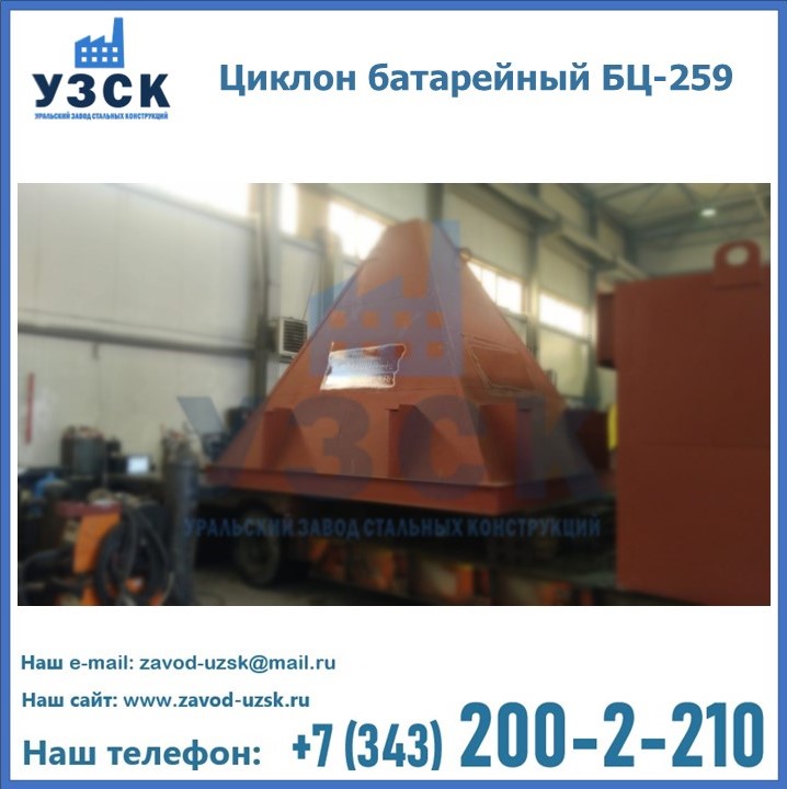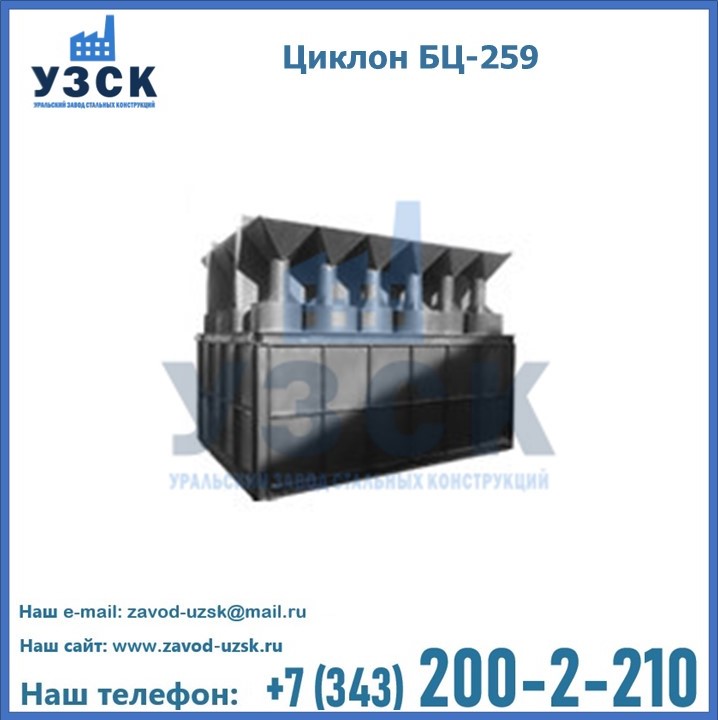 Приобрести качественное оборудование, в том числе, циклоны БЦ-259, можно в компании УЗСК в Королёве. Мы предлагаем долговечную и надежную продукцию по приемлемой цене. Заказать и купить циклоны или другие изделия высокого качества можно через сайт Уральского Завода Стальных Конструкций, или позвонив по указанному в разделе «Контакты» телефону.