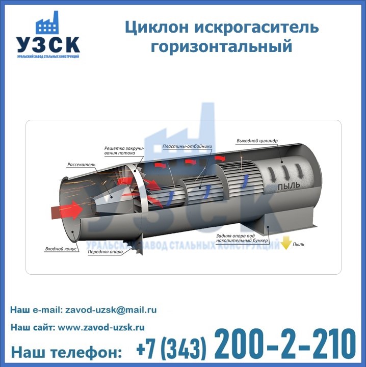 Горизонтальные циклоны-искрогасители ЦГ поставляются в Королёве в сборке или же транспортными единицами для последующей сборки, если предназначены для работы с большими объемами.