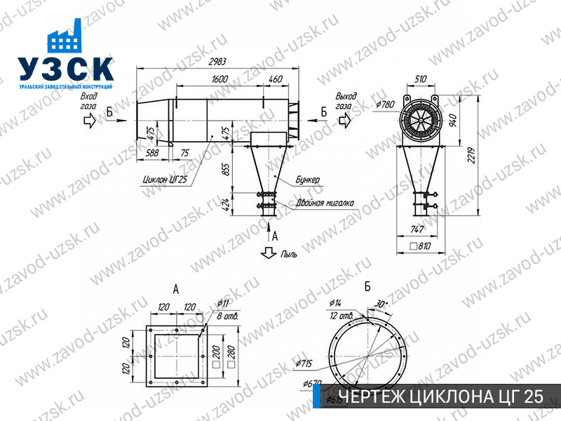 Монтаж циклона-искрогасителя ЦГ должен осуществляться непосредственно к горизонтальному вентиляционному каналу на входе в систему фильтрации и аспирации. Заказать изготовление по индивидуальному техзаданию или купить готовый циклон-искрогаситель ЦГ на заводе УЗСК в Королёве можно, оставив заявку прямо на сайте или позвонив по указанному телефону, уточнив все детали касательно продажи оборудования.