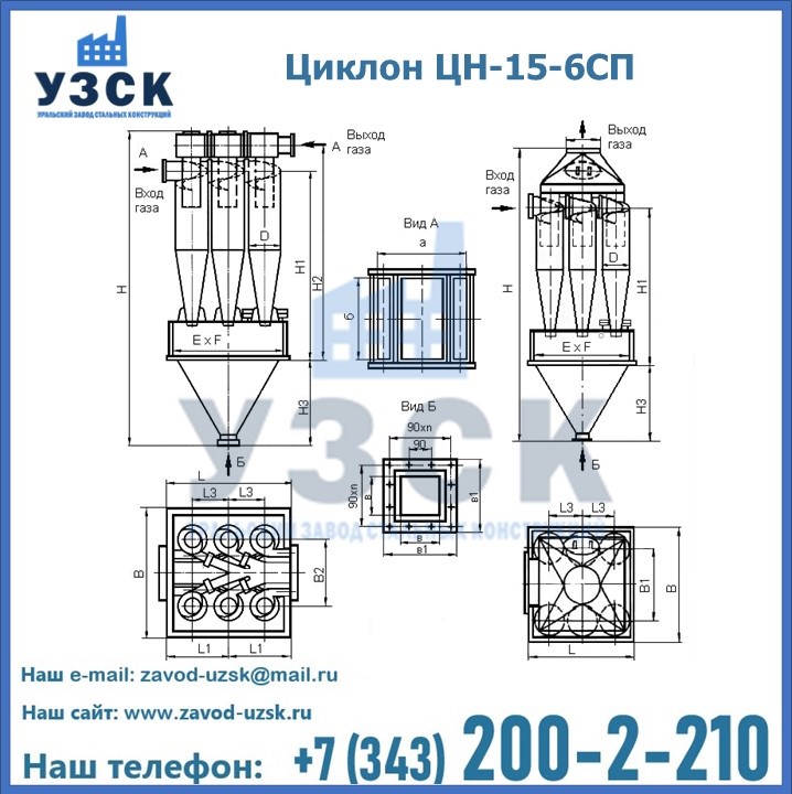 Завод «УЗСК» в Королёве предлагает большой выбор циклонов ЦН-15-500×6СП и прочих устройств, полностью укомплектованных и готовых к эксплуатации. Мы гарантируем соответствие оборудования всем требованиям ГОСТ и ТУ, износостойкость и высокую производительность предлагаемого оборудования. Уральский Завод Стальных Конструкций изготавливает и продает надежное, эффективное и производительное оборудование, имеющее длительную гарантию и большой эксплуатационный ресурс. Если требуется изготовить циклон нестандартных размеров, то такой вариант выполнения заказа тоже предусмотрен, так как предприятие имеет собственные производственные площади и надежных поставщиков. На все поставляемое или производимое оборудование имеются чертежи и прочая техническая документация. Заказать и купить циклоны или прочее оборудование высокого качества и по доступной цене можно через наш сайт или по указанному в разделе «Контакты» телефону.