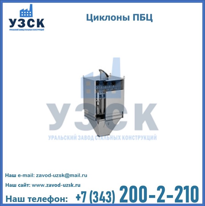 Завод «УЗСК» в Королёве предлагает приобрести циклоны ПБЦ и прочие устройства, полностью укомплектованные и готовые к эксплуатации. Мы гарантируем соответствие оборудования всем требованиям ГОСТ и ТУ, износостойкость и высокую производительность предлагаемого оборудования. Уральский Завод Стальных Конструкций изготавливает и продает надежное, эффективное и производительное оборудование, имеющее длительную гарантию и большой эксплуатационный ресурс. Если требуется изготовить циклон нестандартных размеров, то такой вариант выполнения заказа тоже предусмотрен, так как предприятие имеет собственные производственные площади и надежных поставщиков. На все поставляемое или производимое оборудование имеются чертежи и прочая техническая документация. Заказать и купить циклоны или прочее оборудование высокого качества и по доступной цене можно через наш сайт или по указанному в разделе «Контакты» телефону.
