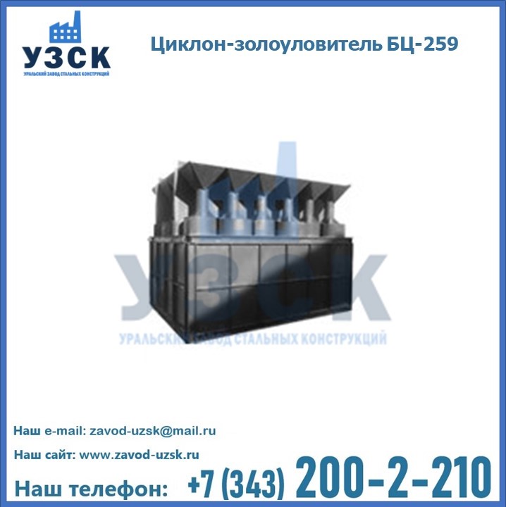 Если вы планируете купить то или иное оборудование, например, циклоны-золоуловители БЦ-259, то рекомендуем заказать данный товар на сайте УЗСК. Мы производим и реализуем продукцию высокого качества по приемлемой цене. Эксперты Уральского Завода Стальных Конструкций в Королёве проконсультируют вас по всем вопросам, помогут сделать выбор и оформить заказ без лишних временных затрат. Мы гарантируем соответствие нашей продукции всем требованиям ГОСТ и ТУ, а также износостойкость и высокую производительность предлагаемого оборудования. Если требуется изготовить циклон нестандартных размеров, то такой вариант выполнения заказа тоже предусмотрен, так как предприятие имеет собственные производственные площади и надежных поставщиков. На все поставляемое или производимое оборудование имеются чертежи и прочая техническая документация. Заказать и купить циклоны или прочее оборудование высокого качества и по доступной цене можно через наш сайт или по указанному в разделе «Контакты» телефону.