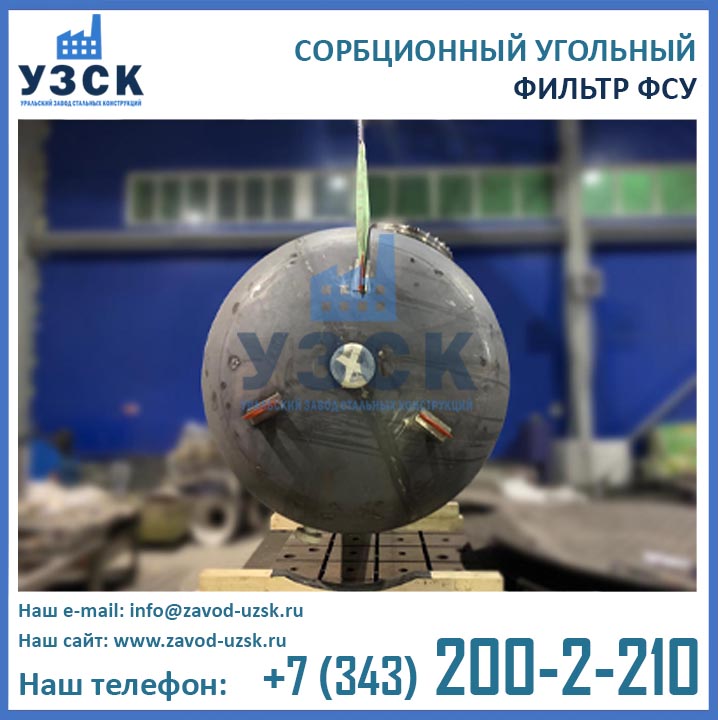 Качественную работу отопительных и промышленных котельных, линий по очистке конденсата и природных вод, электростанций обеспечивает фильтр сорбционный угольный типа ФСУ — вертикальный сосуд с одной камерой цилиндрической формы. Основное назначение оборудования состоит в глубокой очистке возвращаемого с производства конденсата от запахов, органических загрязнений и привкусов. Использование ФСУ в системах водоподготовки гарантирует очищение субстанции от масел, органических примесей, остатков нефтепродуктов до нормального значения — 0.52-1.0 мг/л. Купить в Королёве угольные фильтры предлагает наш Уральский завод стальных конструкций. Мы выполняем производство ФСУ под нужды предприятия, возможно изготовление сорбционных фильтров ФСУ из нержавеющей стали включая корпус и внутренние устройства.
