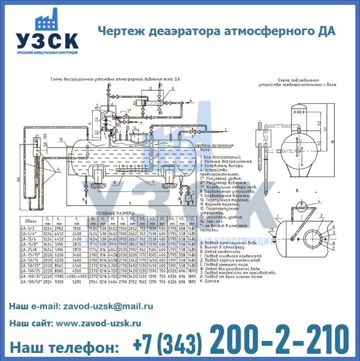 Приобрести качественное оборудование, в том числе, деаэраторы ДА, можно в компании УЗСК в Королёве. Мы предлагаем долговечную и надежную продукцию по приемлемой цене. Заказать и купить деаэраторы или другие изделия высокого качества можно через сайт Уральского Завода Стальных Конструкций, или позвонив по указанному в разделе «Контакты» телефону.